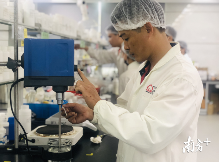 佛山市安安美容保健品有限公司實驗室內(nèi)正在進(jìn)行一系列產(chǎn)品研發(fā) 湯曉微 攝