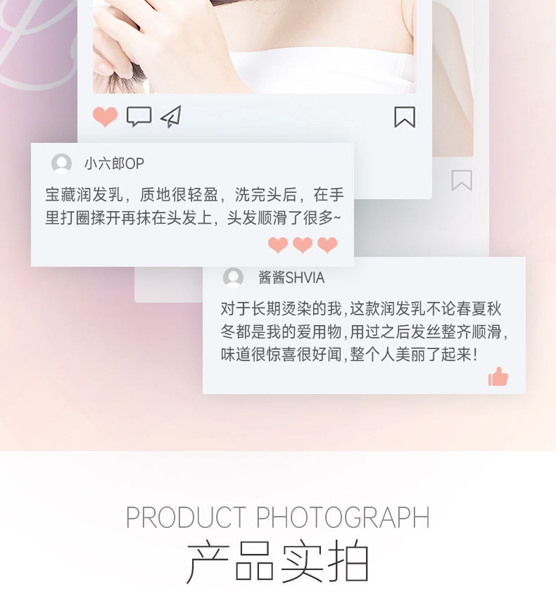 蘊(yùn)含茉莉精油和維生素原B5*,深層潤(rùn)養(yǎng)發(fā)絲,補(bǔ)水鎖水,撫順毛躁,改善粗糙發(fā)質(zhì),防斷韌發(fā),提升秀發(fā)柔順度,使秀發(fā)順滑有彈性,富含光澤。
