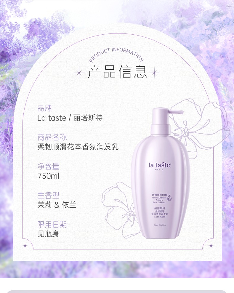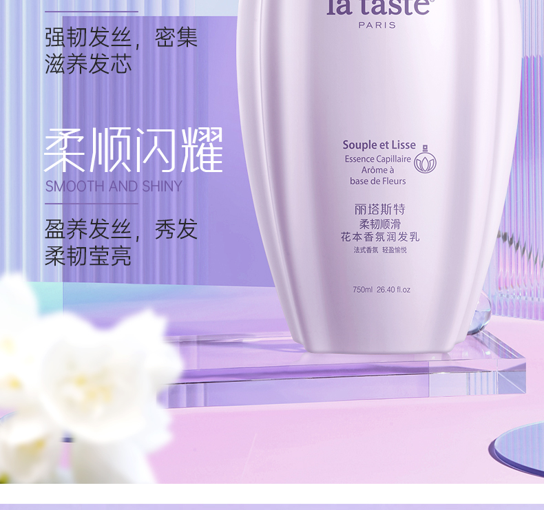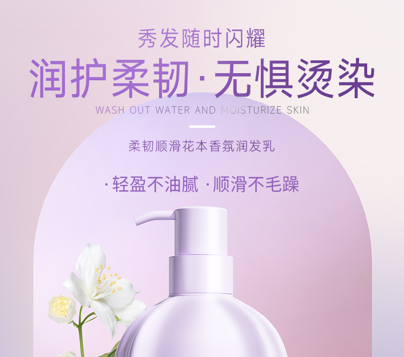 蘊(yùn)含茉莉精油和維生素原B5*,深層潤(rùn)養(yǎng)發(fā)絲,補(bǔ)水鎖水,撫順毛躁,改善粗糙發(fā)質(zhì),防斷韌發(fā),提升秀發(fā)柔順度,使秀發(fā)順滑有彈性,富含光澤。