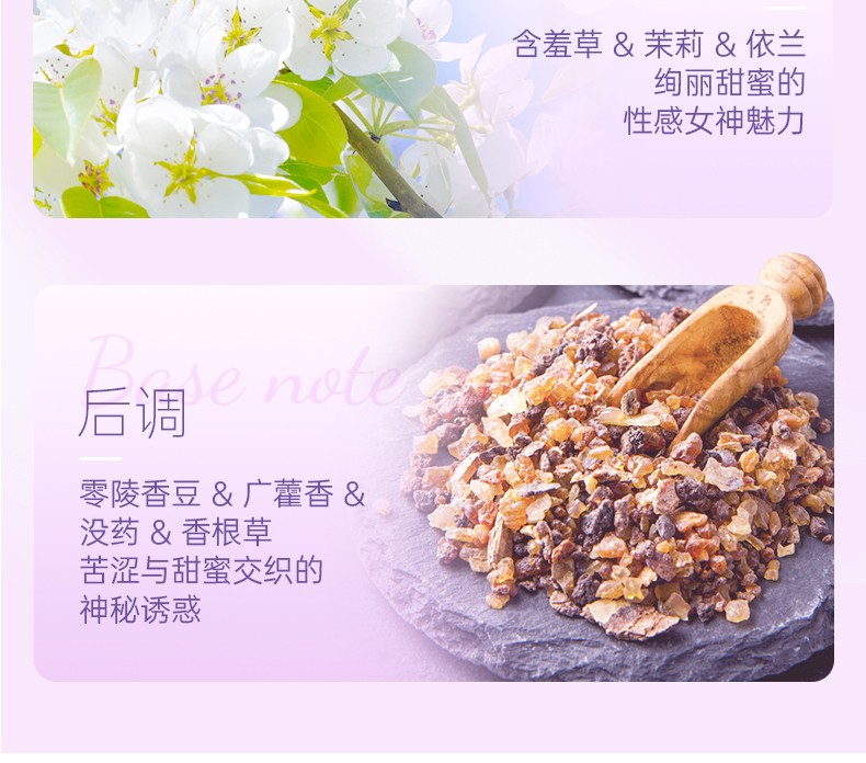 后調(diào):零陵香豆 廣藿香 沒(méi)藥 香根草 苦澀與甜蜜交織的神秘誘惑